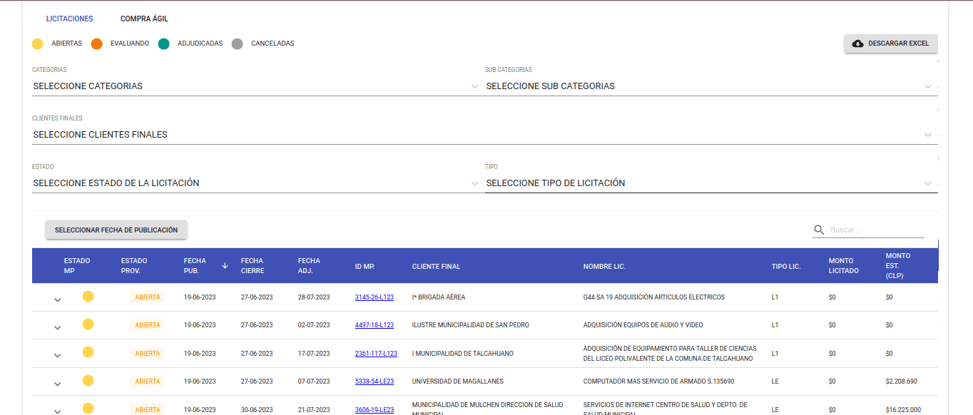 Potencia tu estrategia con información precisa y actualizada. Analizamos todas las compras realizadas por el estado, clasificándolas por: categorías específicas de cada industria. Permitiendo una visión clara y detallada del mercado de interés.
